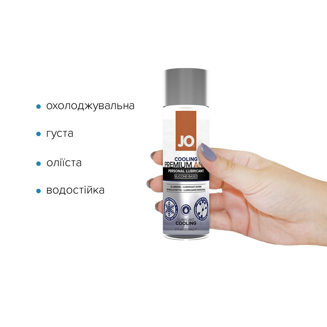 Лубрикант на силиконовой основе JO ANAL PREMIUM — COOLING (60 мл) с охлаждающим эффектом не содержит консервантов и изготовлен с использованием силикона только высочайшего качества. Благодаря супергладкой маслянистой консистенции продукт обеспечивает долговременное и плавное скольжение без особых усилий.