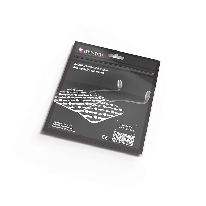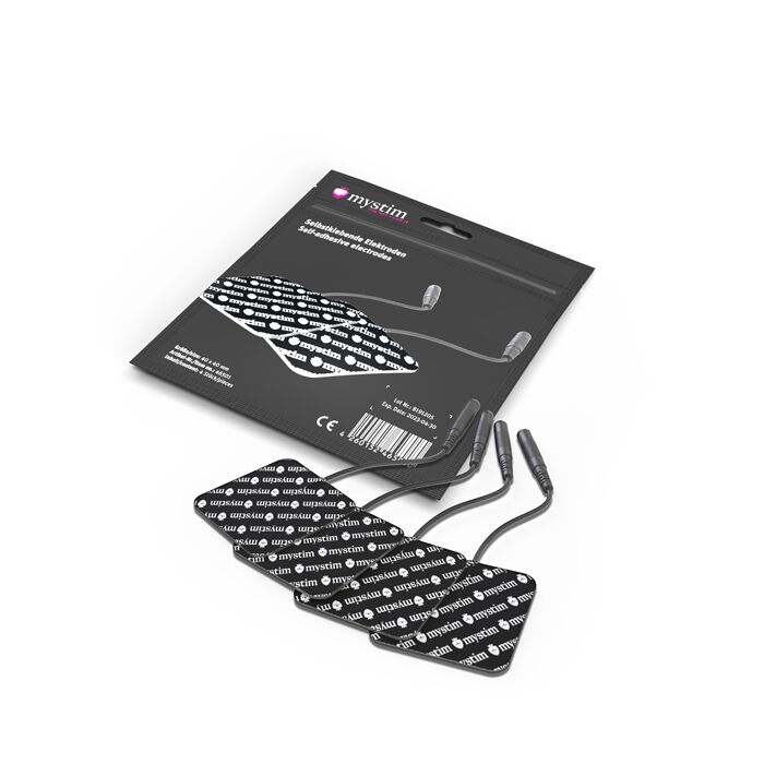 Предлагаем купить электроды Mystim (4 шт) — самоклеющиеся и используемые с любыми устройствами Mystim, в которых есть разъем 2 мм.