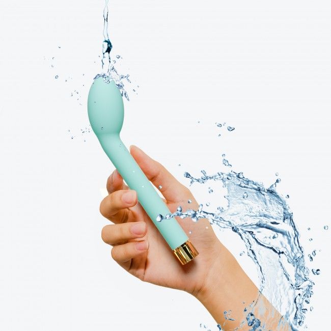 Этот вибратор для точки G сразу привлекает внимание своим внешним видом: трендовый пастельный оттенок, необычная форма и стильные золотистые детали. И, конечно, он очень мощный!