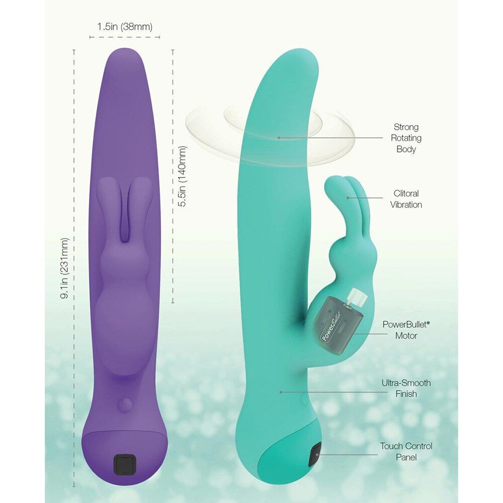 Вибратор полностью покрыт премиальным силиконом, что делает его невероятно приятным на ощупь, безопасным и полностью водонепроницаемым. Проверенная форма кролика с длинными ушками позволит вам ощутить оргазм на все 100% или даже 200%. А вращающаяся головка сделает ваше наслаждение максимально глубоким и полным. Причем, управлять телом вибратора и отростком-кроликом можно по отдельности! Кстати, управление здесь просто потрясающее: это сенсорная панель, по которой нужно всего лишь провести пальцем вверх или вниз для контроля вибрации отростка, либо влево-вправо, чтобы регулировать вибрацию тела.